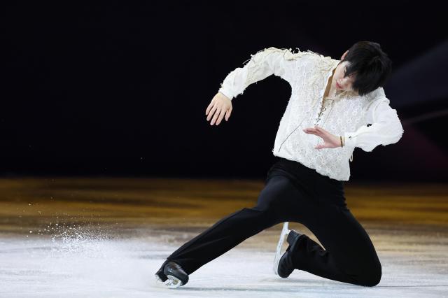 21일(현지시간) 이탈리아 밀라노 아이스스케이팅 아레나에서 열린 2026 밀라노ㆍ코르티나담페초 동계올림픽 피겨스케이팅 갈라쇼에서 차준환이 송소희가 부른 '낫 어 드림'에 맞춰 연기를 펼치고 있다. [사진=연합뉴스] |