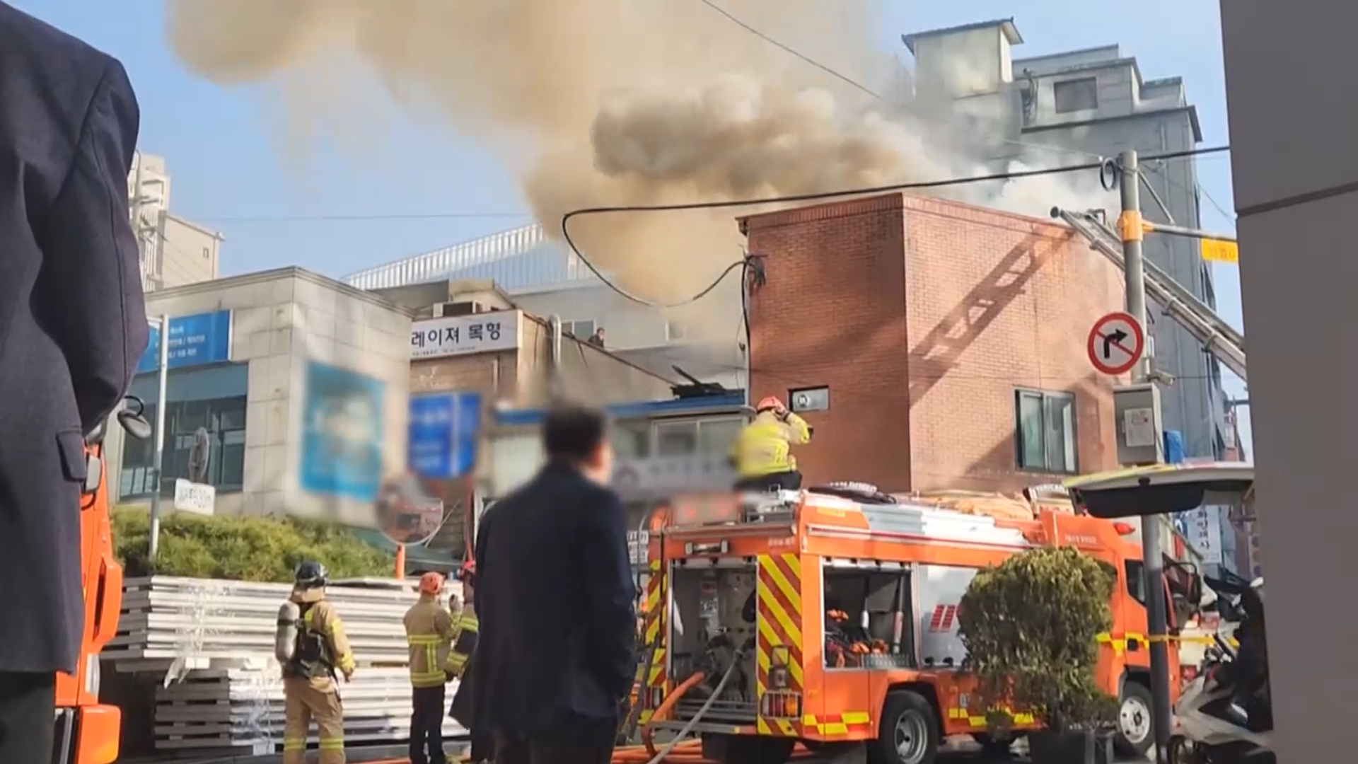 경찰과 소방당국은 건물 옥상 실외기에서 불이 시작된 것으로 보고, 정확한 화재 원인을 조사하고 있습니다.