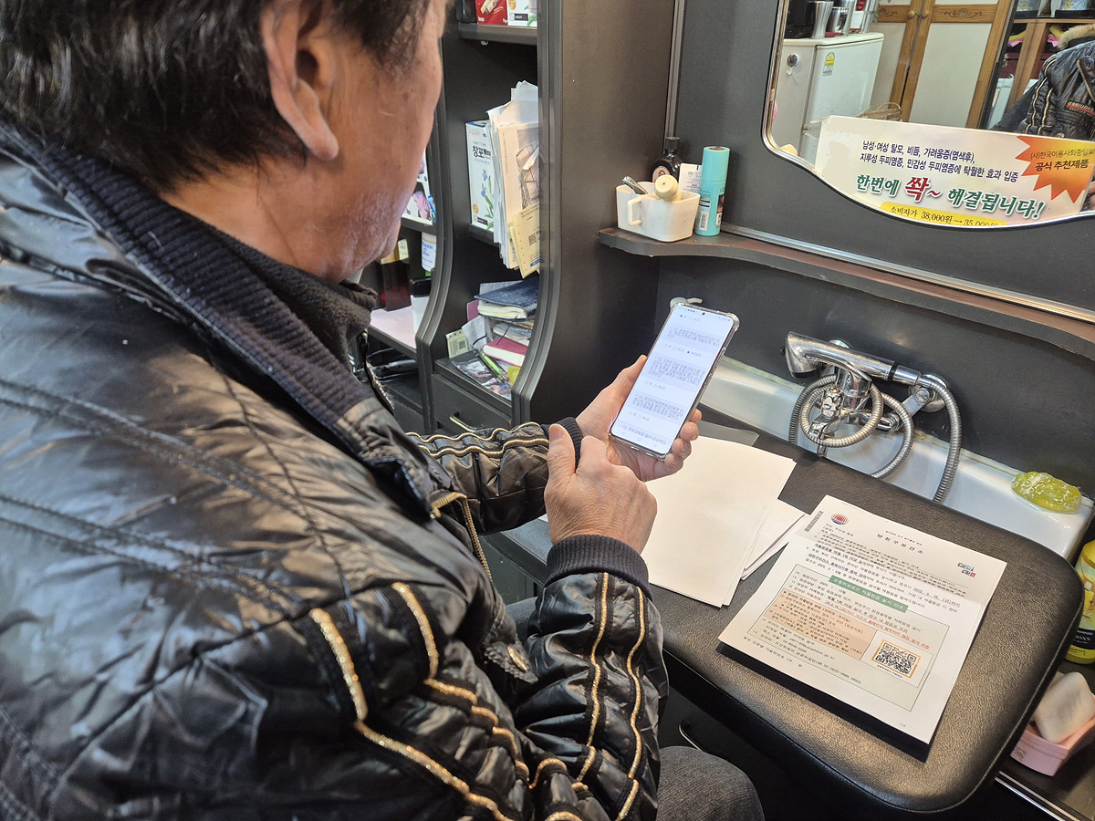서울 양천구의 한 이용업소 영업주가 온라인 자율점검을 진행하고 있다. 양천구 제공 |
