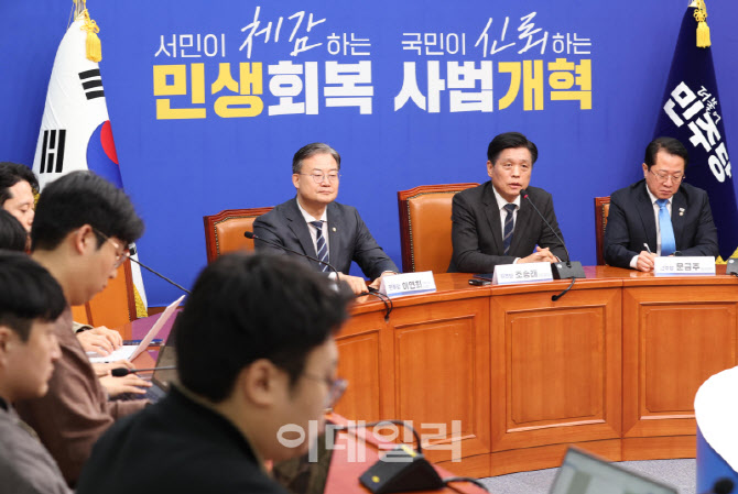[이데일리 노진환 기자] 조승래 더불어민주당 사무총장이 22일 오전 서울 여의도 국회에서 열린 현안 관련 기자간담회에서 발언을 하고 있다. |