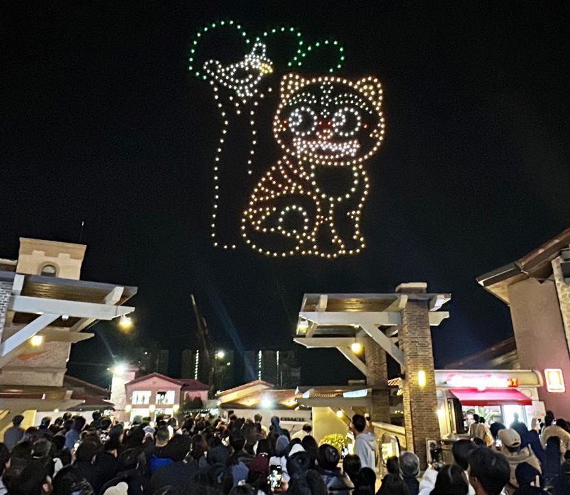 21일 부산 기장군 신세계사이먼 부산 프리미엄 아울렛 중앙광장에서 쇼핑을 즐기러 나온 고객들이 500대 규모의 드론이 밤하늘을 수놓은 대규모 야간 드론 쇼를 관람하고 있다.