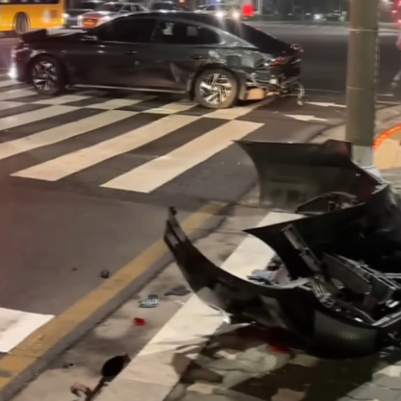 20일 오후 10시 50분경 경기 성남시 분당구 신기사거리에서 김인호 전 산림청장이 낸 음주 운전 사고로 인해 차량 잔해가 뒹굴고 있다. 김 전 청장은 21일 직권면직됐다. 채널A 캡처 |