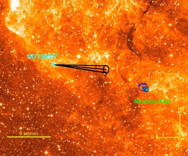 해파리 성운은 1만~3만년 전 초신성 폭발의 잔해로 대략 지구에서 5000광년 떨어져 있다. 과거 두 개의 무거운 별이 서로의 질량 중심을 기준으로 빠르게 공전하다가 한쪽이 초신성 폭발로 다른 쪽을 밀어내면서 상당히 무거운 초고속 별인 HD 254577이 탄생한 것이다.