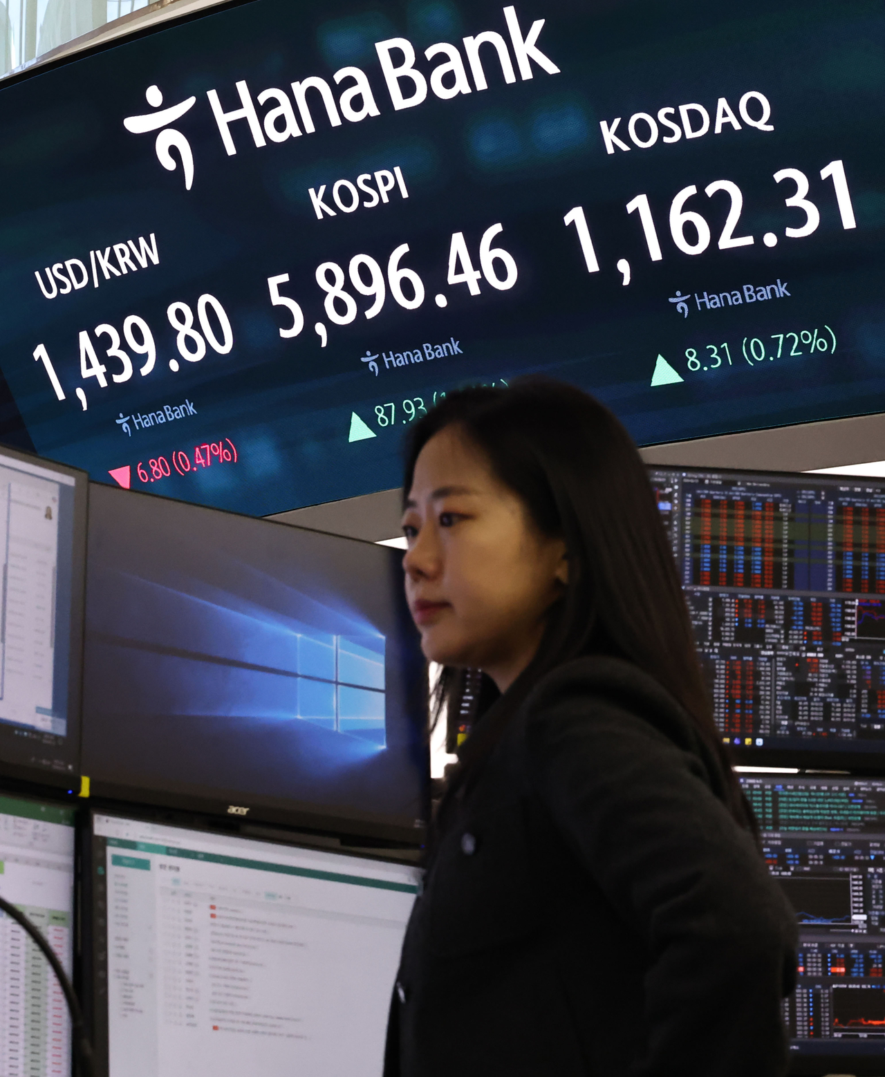 23일 서울 중구 하나은행 딜링룸 현황판에 원/달러 환율 등이 표시되고 있다. [연합] |