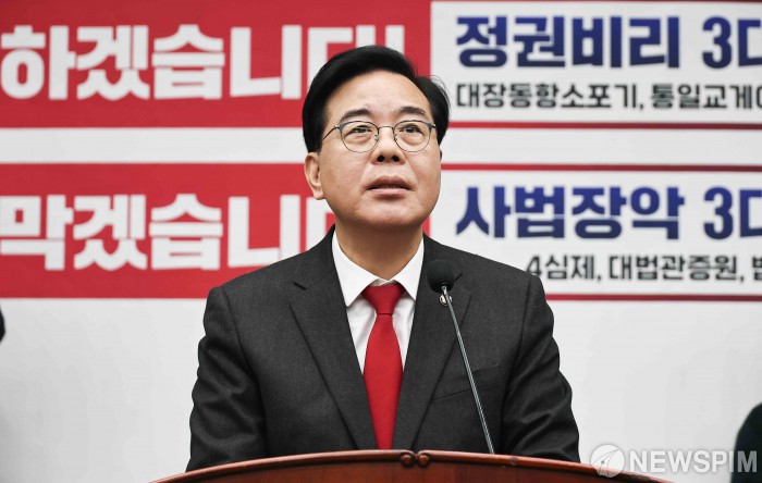 [서울=뉴스핌] 윤창빈 기자 = 송언석 국민의힘 원내대표가 23일 오전 서울 여의도 국회에서 열린 의원총회에서 모두발언을 하고 있다. 2026.02.23 pangbin@newspim.com