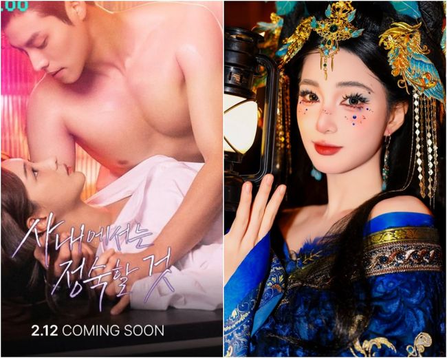 공개된 사진 속 율희는 푸른빛이 감도는 전통풍 의상을 입고 화려한 금빛·청록빛 장식이 더해진 헤어스타일로 시선을 압도했다. 이국적인 메이크업과 반짝이는 페이스 포인트, 강렬한 눈빛이 어우러지며 몽환적인 분위기를 자아냈다. 손에 든 랜턴과 붉은 매화 소품까지 더해져 한 편의 판타지 화보를 연상케 한다. 중국 왕홍 스타일의 변신이다.