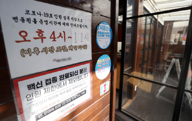 2022년 당시 코로나19 유행이 지속되고 있던 가운데 서울 마포구 홍대거리 한 식당에 영업시간 안내문이 붙어 있다. (사진=뉴시스) |