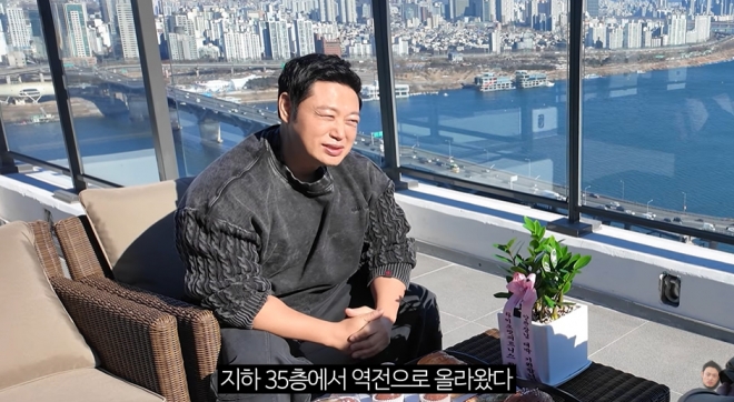 그는 “지하 밑에 있었다. 지하 35층에서 역전으로 올라왔다”며 지난 시간을 돌아봤다. 이어 “한강에 뛰어들 생각만 했지 이렇게 위에서 한강을 내려다보는 건 처음”이라고 밝혔다.