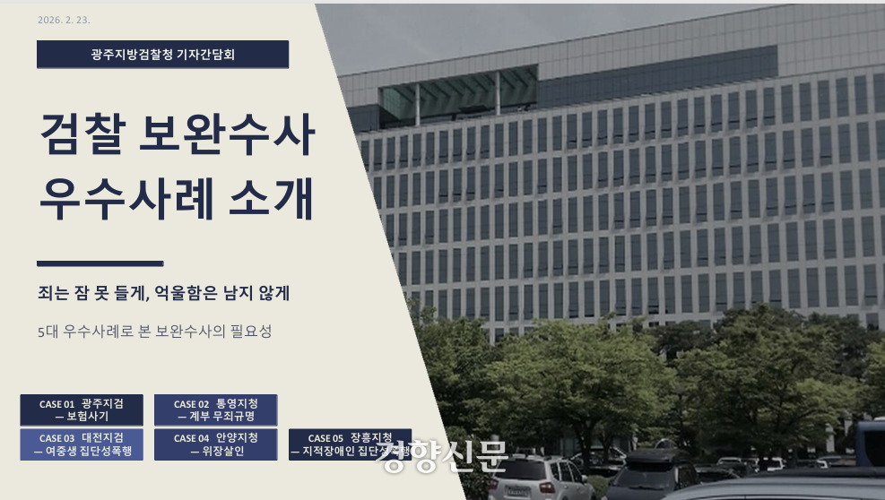 광주지검이 검찰 보완수사로 국민들의 억울함을 밝혀낸 사례를 공개하며 검사의 ‘보완수사권’ 필요성을 강조했다. 김종우 광주지검장은 “보안수사권이 없어지면 형사사법 제도 자체가 무너질 우려가 있다”고 말했다.