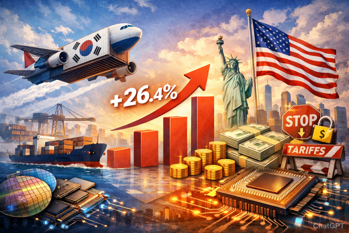 미국의 관세장벽에도 우리나라 수출이 선전하고 있는 것은 무엇보다 반도체 수출이 견인차 역할을 하고 있기 때문이다. 1월에 102.7% 급증했고, 2월에도 134%나 급증하면서 세 자릿수 증가율을 지속하고 있다.