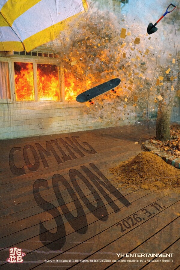 최예나는 23일 공식 SNS를 통해 새 음반 발매를 예고하는 사진을 공개하고, 오는 3월 11일 컴백을 공식화했다. 사진에는 화염에 휩싸인 건물과 재로 사라져 가는 나무가 등장해 강렬한 분위기를 자아낸다. 그 위로 스케이트보드와 삽 등이 공중에 날아가는 듯한 요소가 더해져 긴장감과 극적인 장면을 완성한다.