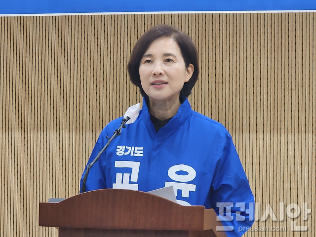 ▲유은혜 경기도교육감 예비후보가 23일 경기도의회 브리핑룸에서 기자회견을 열고 ‘직업계고등학교 체제 개편 방안’을 발표하고 있다. ⓒ프레시안(전승표) |
