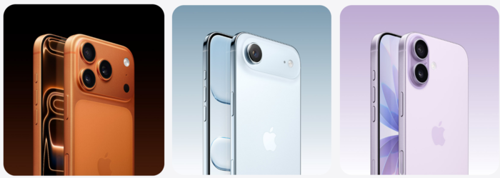아이폰17 시리즈. 왼쪽부터 프로, 에어, 일반형. 〈사진 애플 홈페이지 캡쳐〉 |