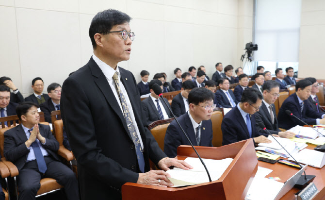 [이데일리 이영훈 기자] 이창용 한국은행 총재가 23일 서울 여의도 국회에서 열린 재정경제기획위원회 회의에서 업무보고를 하고 있다. |