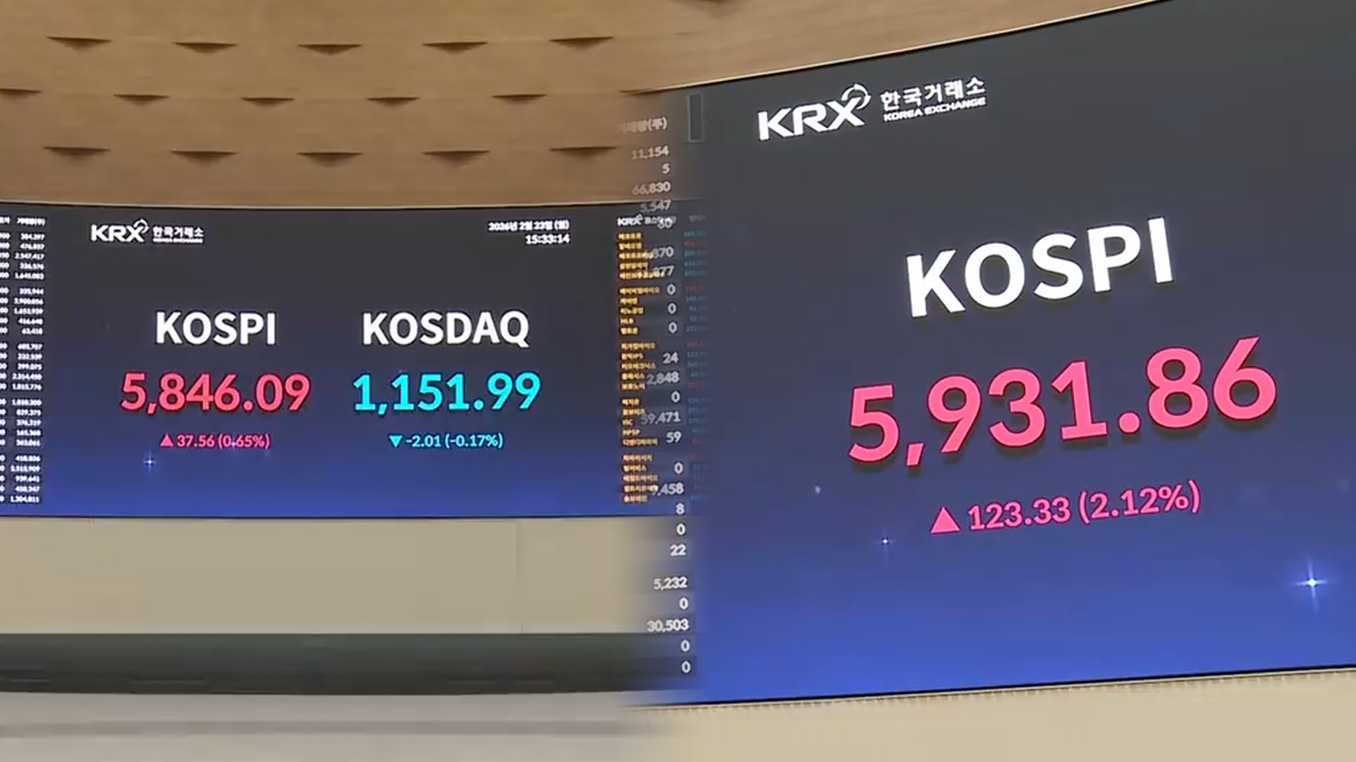 종가 기준으로도 5,840선에서 마감하며 사상 최고치를 경신했습니다.