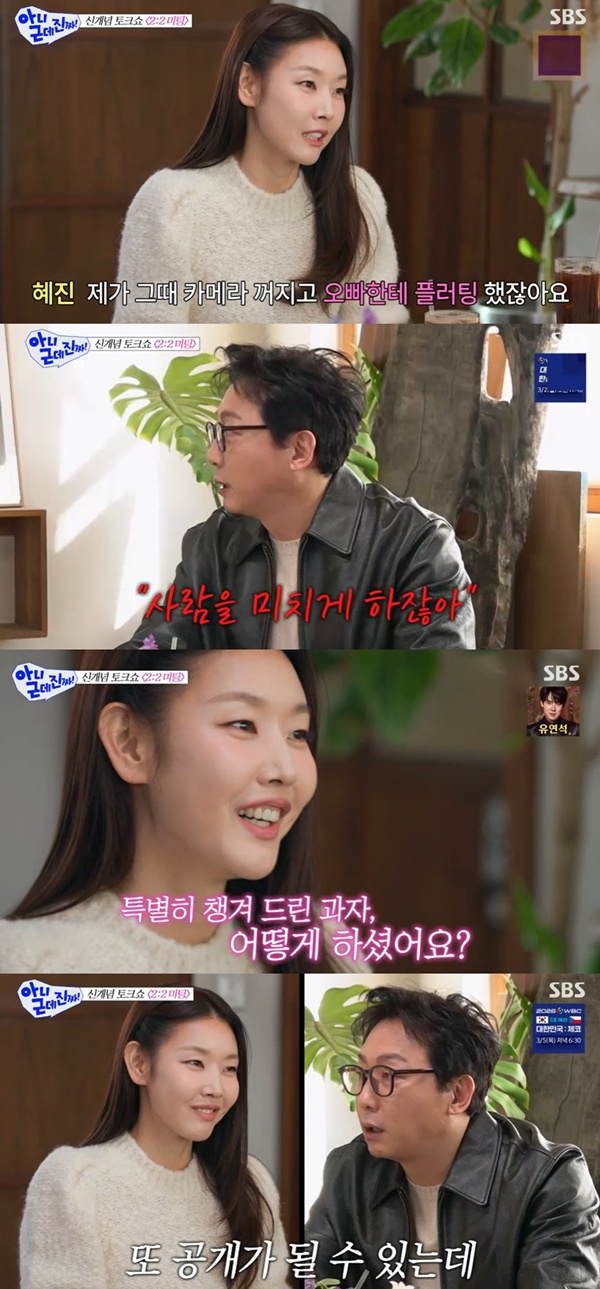 한혜진은 "그때 카메라 꺼지고 오빠한테 플러팅 하지 않았냐. 그거 버리신 거 아니죠"라고 물었다.