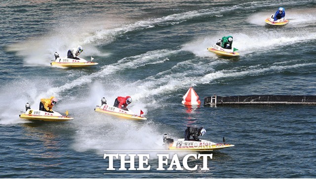 미사경정장에서 출전 선수들이 2턴마크에서 경합을 벌이고 있다./국민체육진흥공단 |