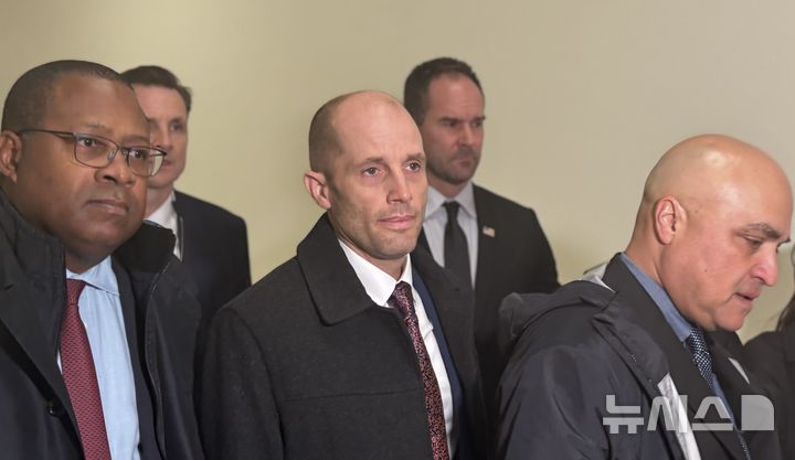 [워싱턴=뉴시스]이윤희 특파원 = 해롤드 로저스(가운데) 쿠팡 한국법인 임시대표가 23일(현지 시간) 워싱턴DC 연방하원 건물인 레이번 빌딩에서 미국 하원 법사위원회가 개최한 쿠팡 사태 관련 비공개 증언청취(deposition) 절차에 출석하고 있다. 2026.02.24. |