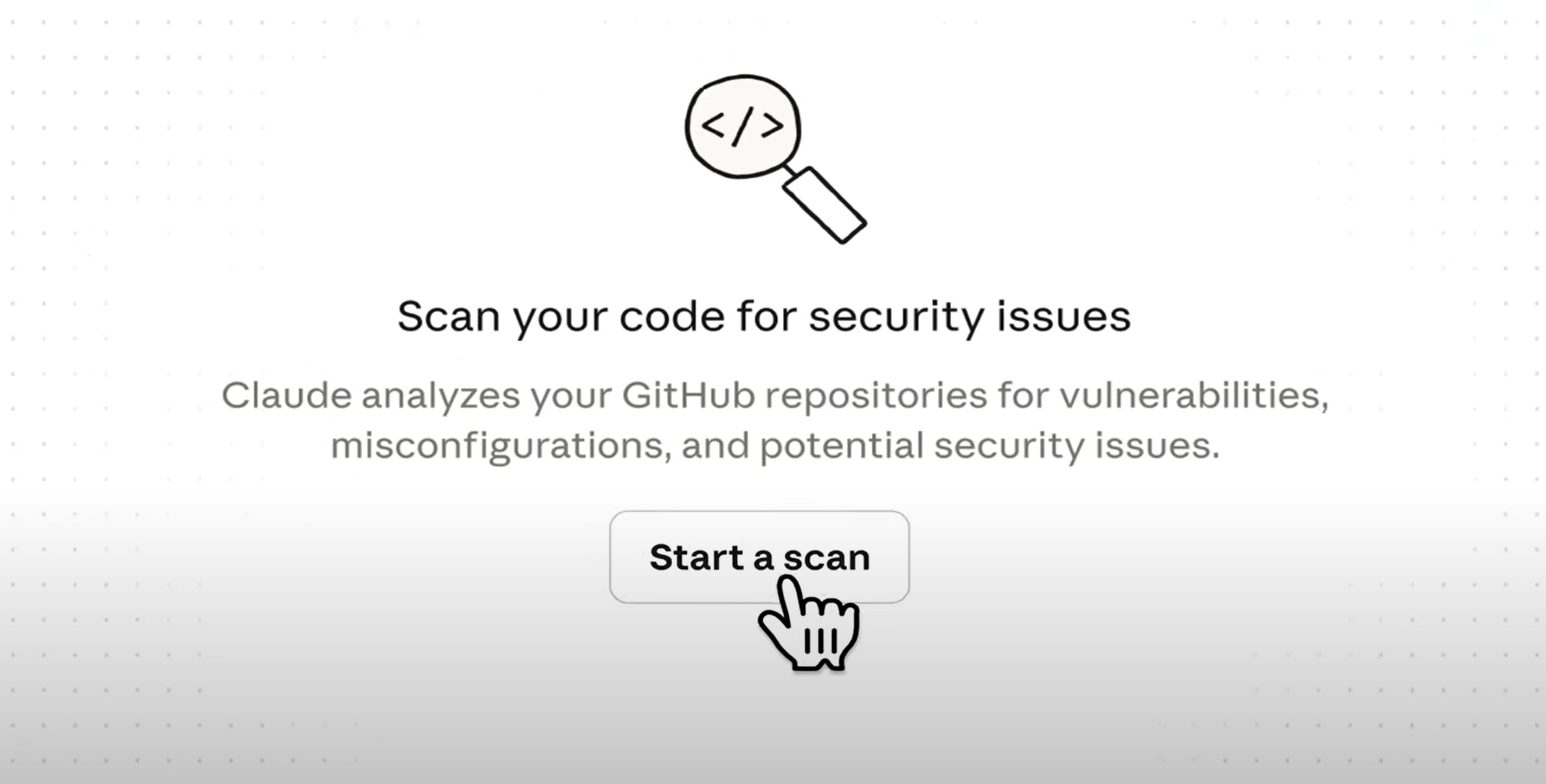 인공지능(AI) 기업 앤스로픽이 20일 공개한 '클로드 코드 시큐리티'. 스캔 버튼만 누르면 코드에서 해킹 위험이 높은 취약점을 찾아준다. /앤스로픽 |
