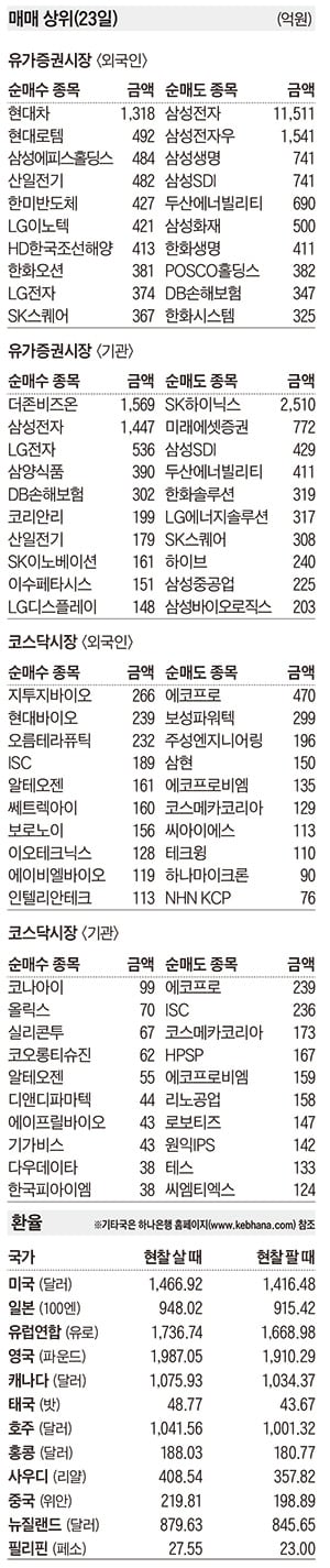 [주식 매매 상위 종목 및 환율] 2026년 2월 23일자
