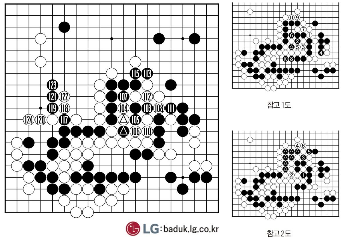 104가 완벽한 수읽기를 바탕으로 한 일착이다. 참고 1도 1은 이하 수순으로 흑이 먼저 따내는 패가 돼 역전(12…).
