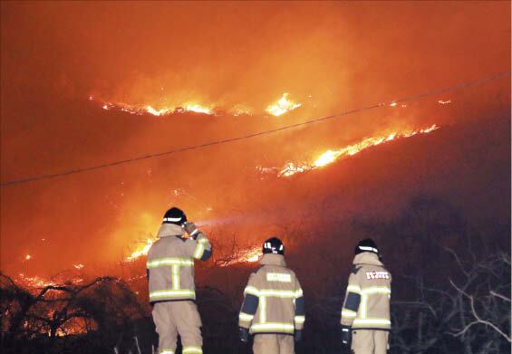 산림 당국은 전날 오후 10시 30분 산불 대응 2단계를 발령했고 소방 당국도 오후 11시쯤 국가소방동원령을 내렸다. 사흘간 헬기 115대와 진화 인력 1600여 명이 투입됐다.