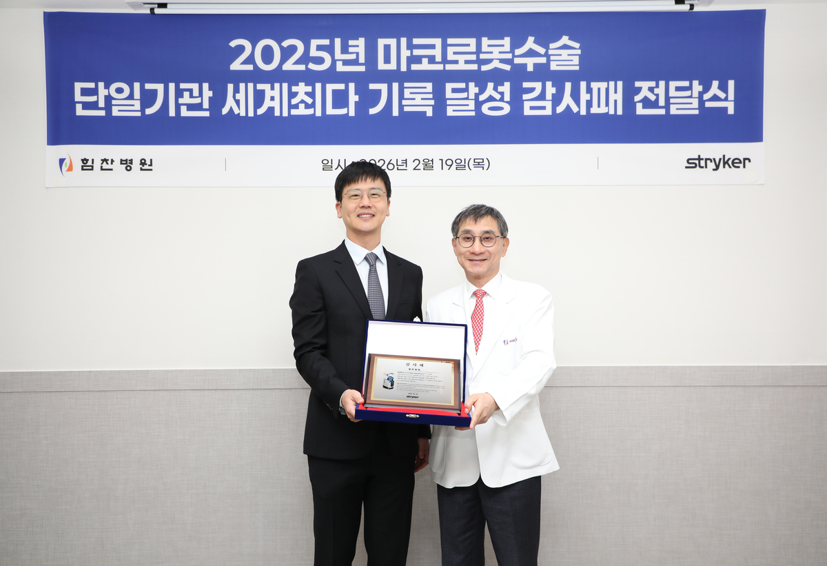 2023~2025년 세계 최다 수술 기록 달성…한국스트라이커로부터 감사패 수여美 정형외과 전문병원 HSS 제치고 글로벌 선두 유지