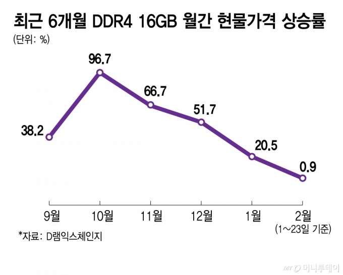 DDR4 16GB 월간상승률 0.9%, 지난해 7월 이후 최저