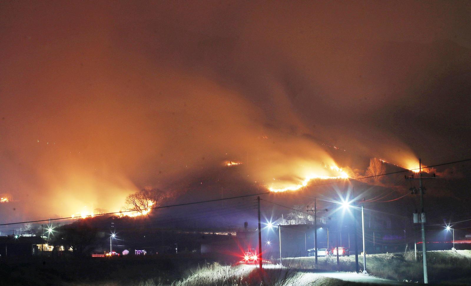 밀양 산불, 요양병원-민가 확산 우려… 소방당국 저지선 확보에 총력