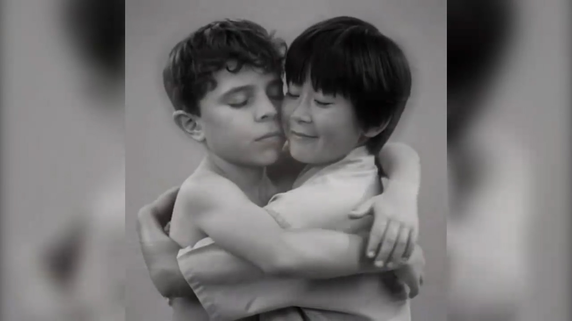 어린시절 포옹 모습은 인공지능, AI 편집 기술을 활용한 것으로 보입니다.