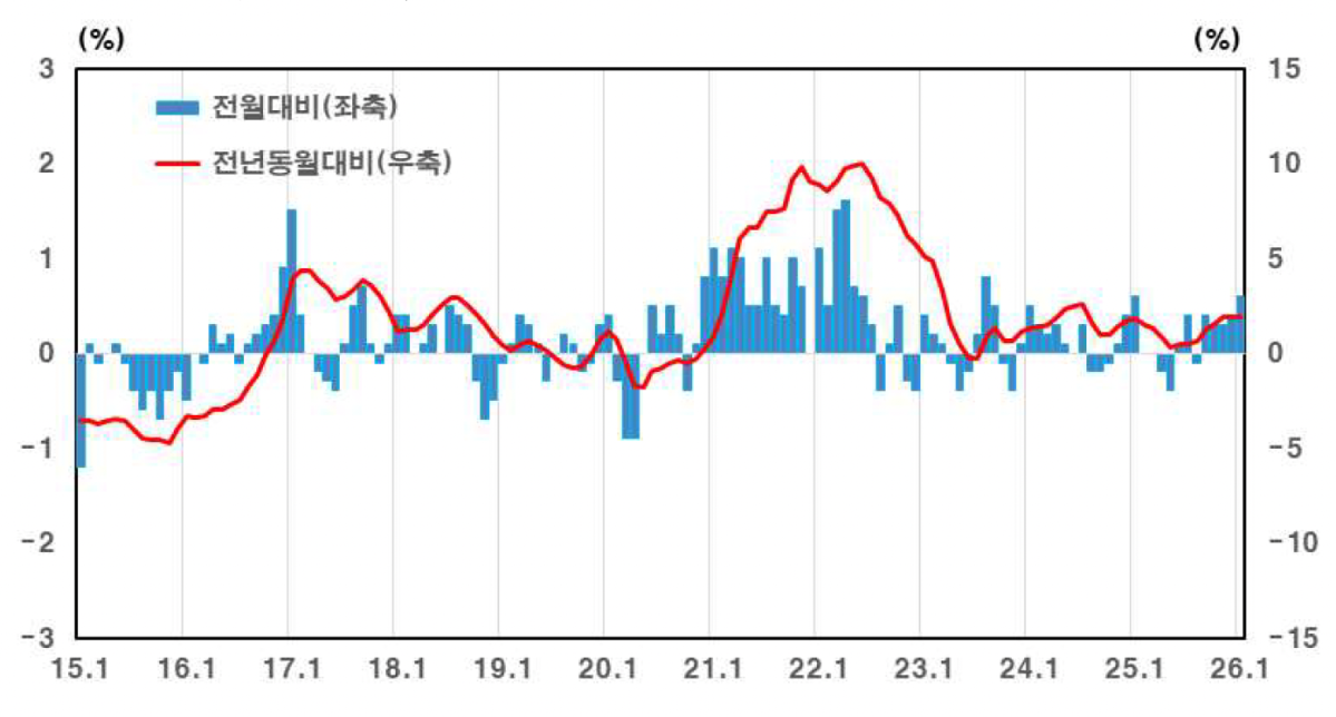 24일 한국은행에 따르면 1월 국내 생산자물가지수(잠정)는 122.5(2020년=100)로 직전월(121.76) 대비 0.6% 상승한 것으로 추산됐다. 이는 5개월 연속 오름세(9월 0.4%, 10월 0.3%, 11월 0.3%, 12월 0.4% )를 이어간 것이다. 지난해 같은 기간과 비교하면 1.9% 상승해 3개월 째 비슷한 상승폭을 이어갔다.