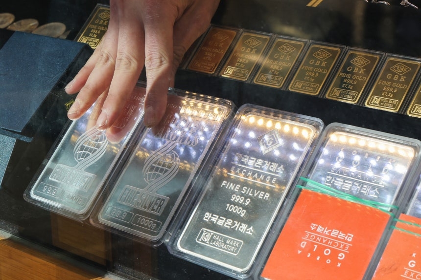 서울 종로구 한 보석 상점에 놓여진 실버바. [연합] |