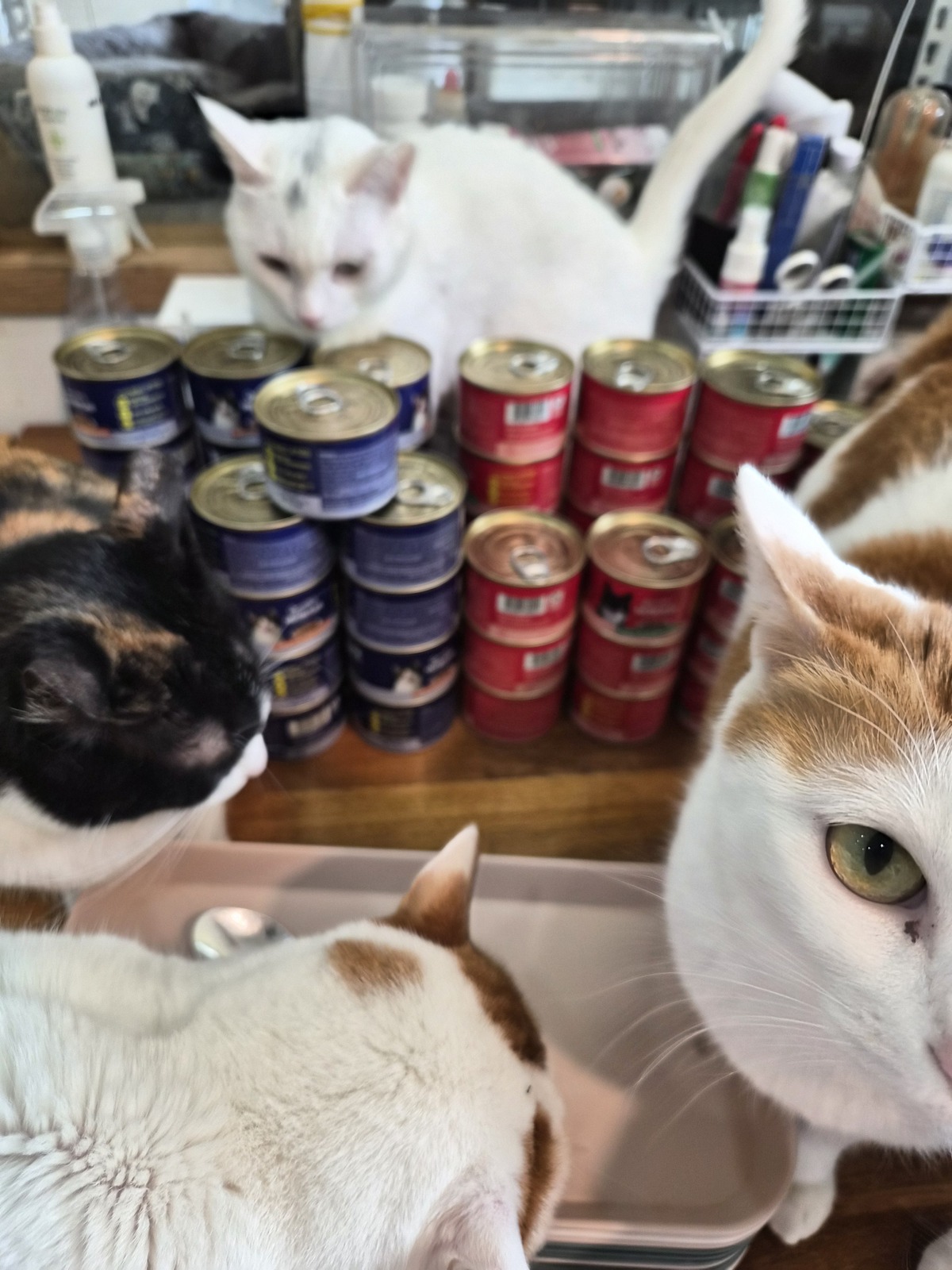 보호소의 고양이들과 캔포캣 캠페인으로 선물 받은 고양이 간식들. 팅커벨프로젝트 제공 |