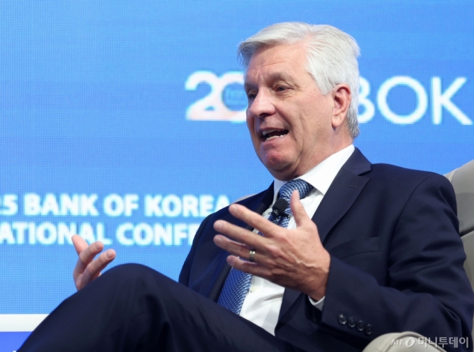 크리스토퍼 월러 미국 연방준비제도 이사가 서울 중구 한국은행에서 열린 2025년 BOK 국제컨퍼런스에서 이창용 한국은행 총재와 미국 경제 전망과 다양한 통화정책 이슈에 대해 대담하고 있다. 2025.06.02. yesphoto@newsis.com /사진=홍효식 |