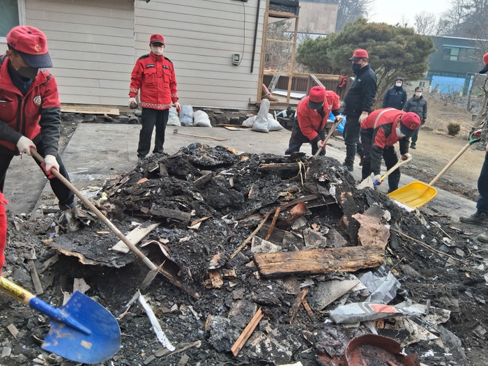 원주시 부론면은 지난 13일 산림 인접 화재가구에서 현장 정리 및 잔재물 처리 지원 활동을 실시했다.이번 지원은 봄철 산불조심기간을 맞아 화재 잔재물로 인한 2차 산불 확산 위험을 사전에 차단하고, 산림과 인접한 지역의 안전을 확보하기 위해 추진됐다.이날 활동에는 부론면 직원과 산불예방인력, 산불진화대원이 함께 참여해 화재 잔해물 및 가연성 물질을 신속히 제거하고, 산림과 맞닿은 구간을 중심으로 잔불 여부와 재발화 가능성을 면밀히 점검했다.특히 산불진화대원의 전문성을 바탕으로 현장 위험 요소를 체계적으로 정비하고, 건조한 기상 여건 속 추가 피해가 발생하지 않도록 예방 조치를 강화했다. 사진|원주시청 |