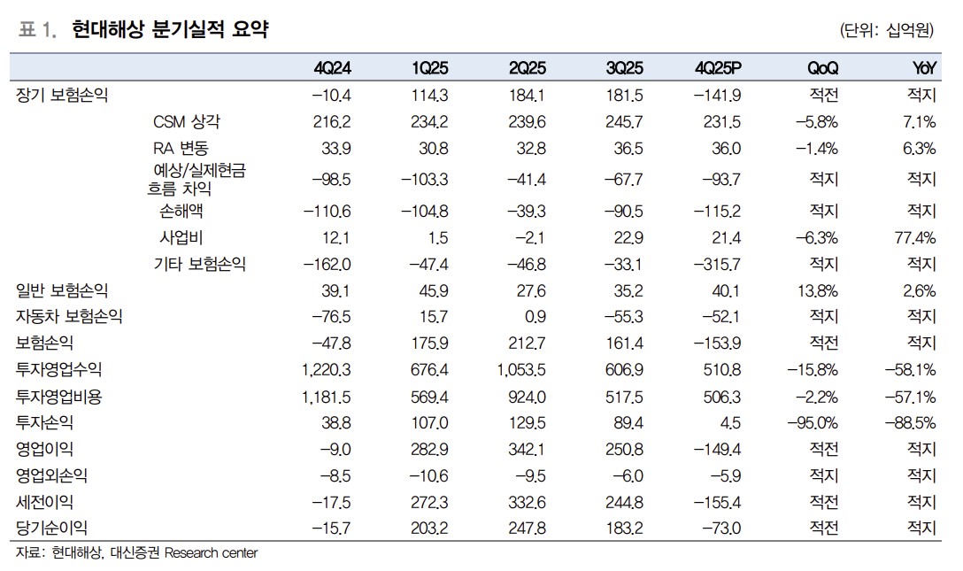 지난해 4분기 순손실 730억원으로 대신증권 추정에는 부합했으나 시장 기대치(컨센서스)에는 하회했다. 박 연구원은 “기타보험손익 내 손실계약비용이 대규모 손실을 기록함에 따라 부진한 실적을 기록했다”고 분석했다.