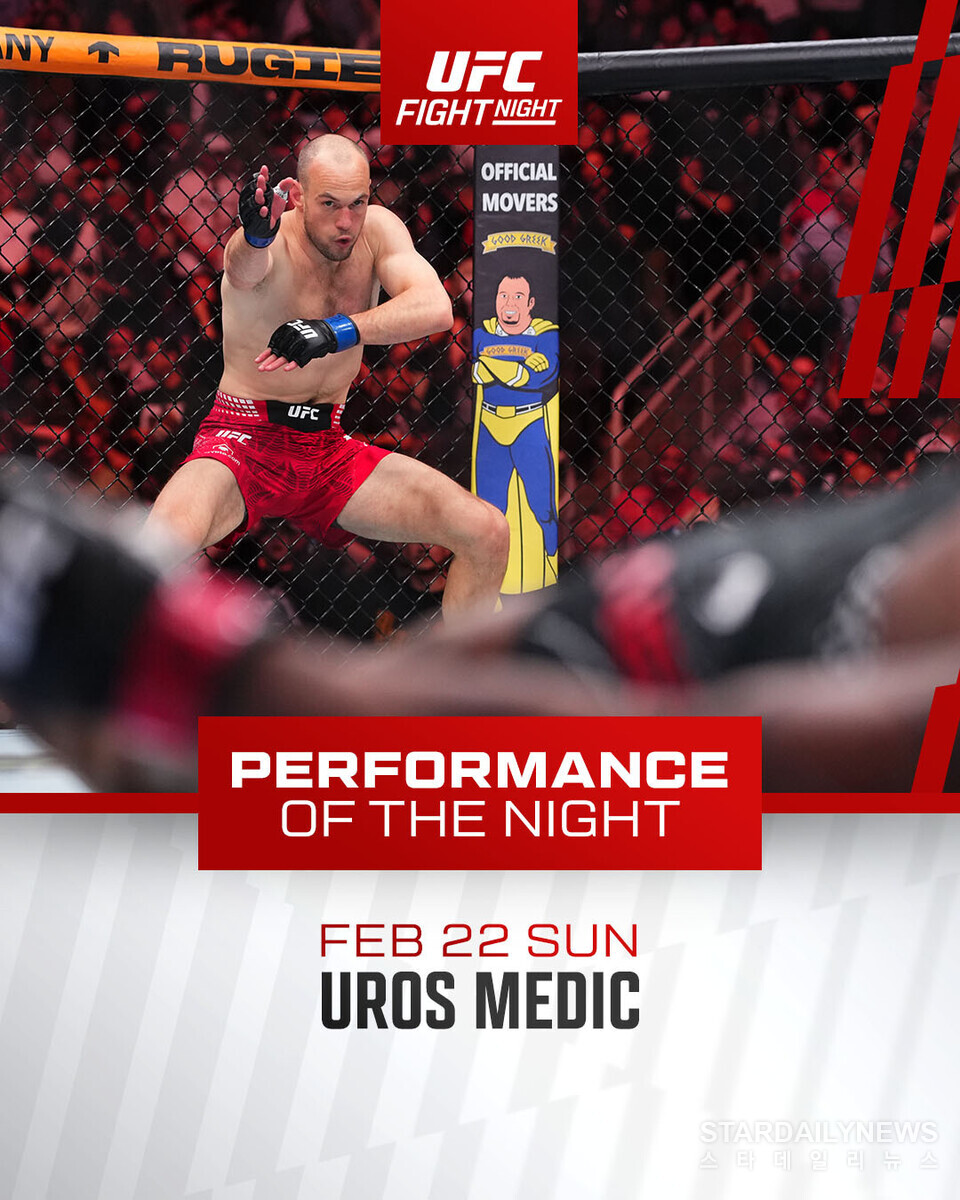 코메인 이벤트에서는 우로스 메디치가 웰터급 랭킹 12위 제프 닐을 1라운드 1분 19초 만에 왼손 훅으로 KO시키며 3연속 1라운드 피니시를 기록했다. 랭킹 진입 가능성도 높아졌다. 메디치는 김동현, 고석현과 함께 훈련한 인연으로 국내 팬들에게도 잘 알려져 있다.