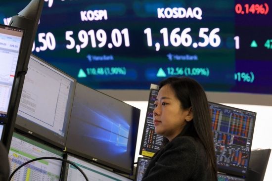 이날 한지영 키움증권 연구원 "전일 코스피가 장중 5900포인트를 터치한 후 상승폭을 반납했지만, 코스피 6000포인트 돌파는 시간 문제라는 게 중론으로 형성됐다"며 "트럼프 관세 노이즈, 미국 연방준비제도(Fed) 정책 불확실성, 미국 인공지능(AI)주 수익성 불안 등 대외 부담 요인이 상존함에도 코스피는 펀더멘털, 밸류에이션 상으로 여타 증시 대비 우위에 있는 것으로 판단된다"고 설명했다.