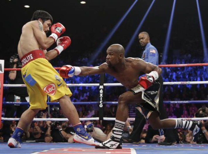 2015년 당시 메이웨더(오른쪽)와 파퀴아오의 대결 모습. 연합뉴스 |