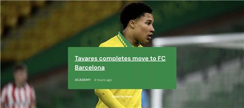 바르셀로나, 노리치 시티 '16세 유망주' 타바레스 영입 |