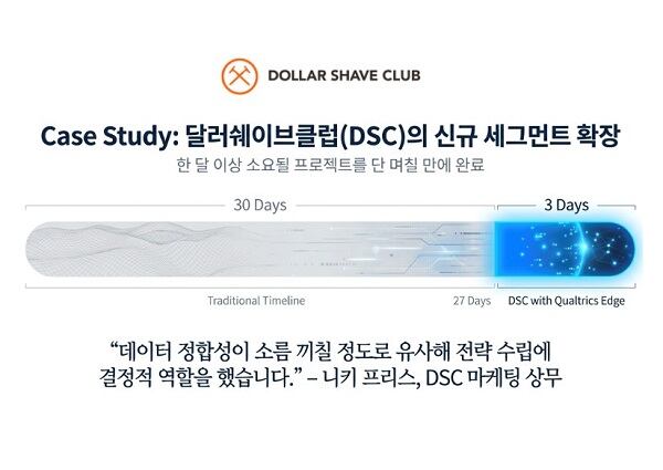 미국 면도기 구독 서비스 기업 ‘달러쉐이브클럽(DSC)’의 사례는 이 기술의 위력을 입증한다. DSC는 최근 신규 세그먼트 확장 검증을 위해 ‘퀄트릭스 엣지(Qualtrics Edge)’의 합성 패널을 도입했다. 통상 한 달 이상 소요될 프로젝트가 단 며칠 만에 마무리됐다.