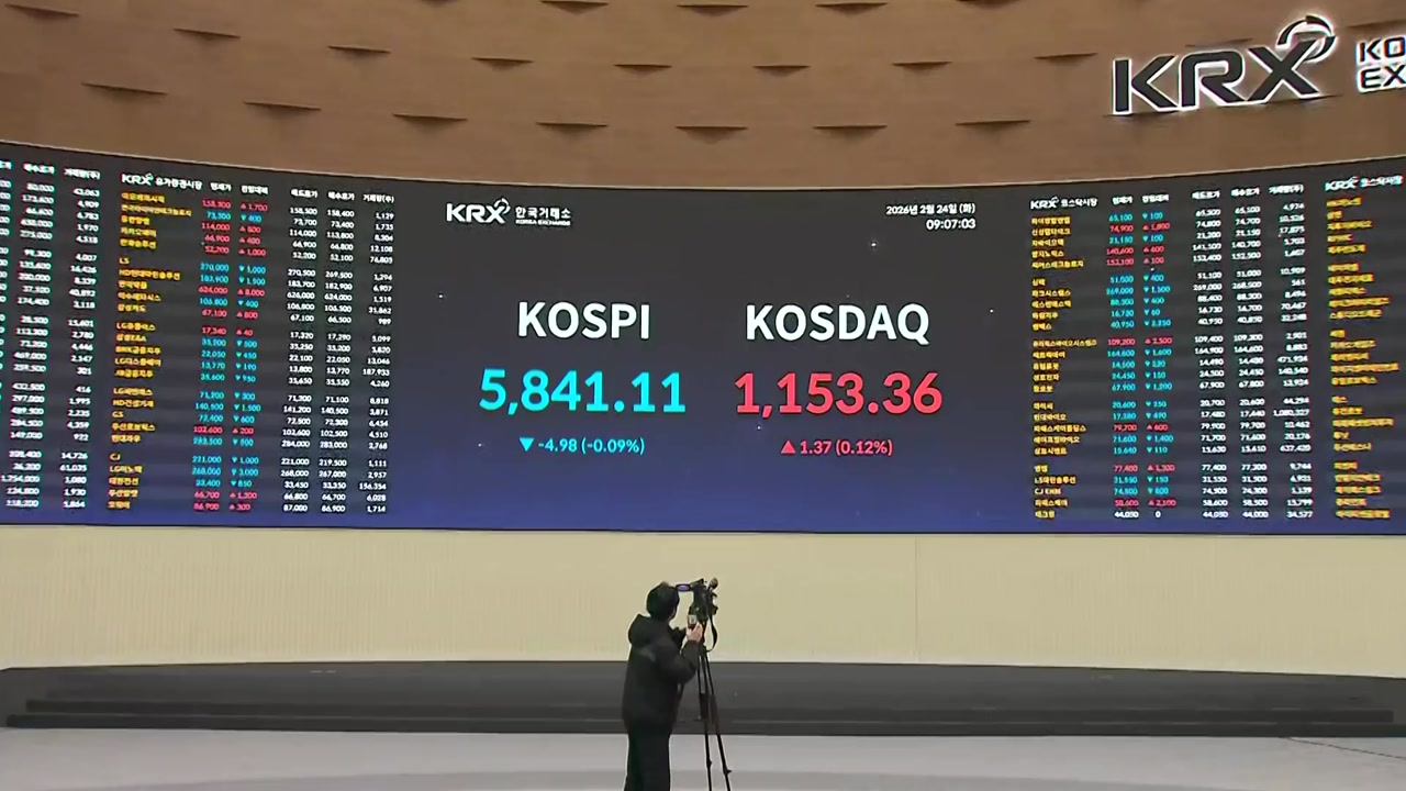 코스피는 0. 13% 오른 5853포인트로 개장했지만 조금 전에 하락 전환해서 현재 5841포인트를 지나가고 있습니다.