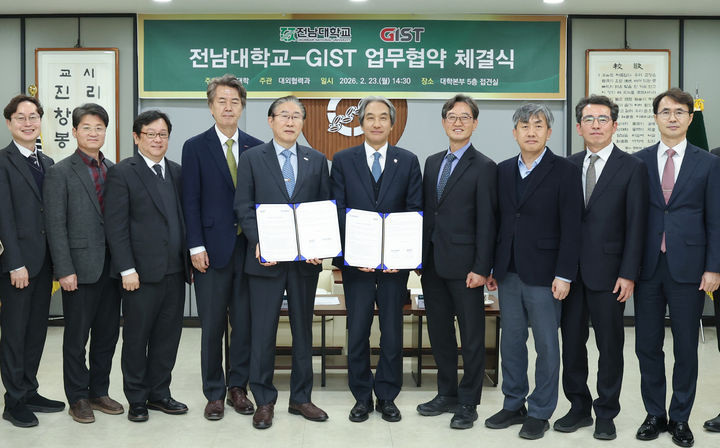 [광주=뉴시스]맹대환 기자 = 전남대학교는 지난 23일 대학본부에서 GIST와 의과학 인재 양성을 위한 업무협약을 체결하고 공동 교육과 융합연구 기반 구축을 위한 협력 체계를 가동하기로 했다고 24일 밝혔다.