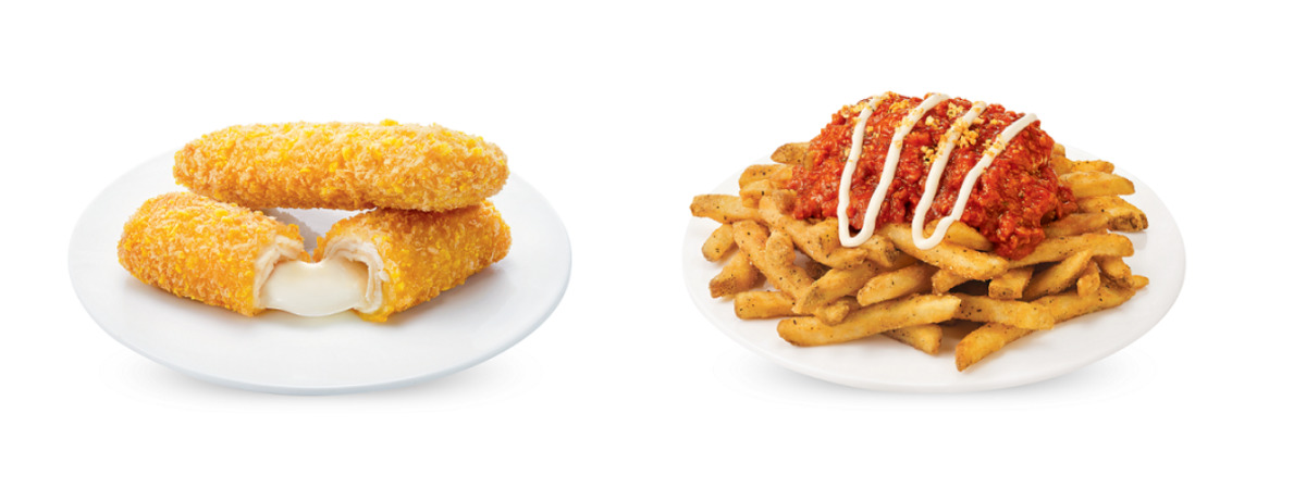 맘스터치 사이드 메뉴 2종(치킨치즈스틱, 미트칠리감자) [사진=맘스터치 제공] |