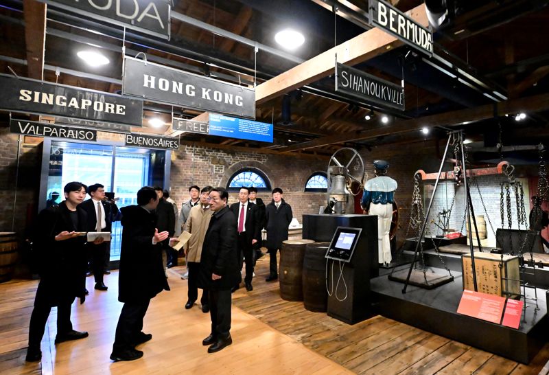 유정복 인천시장이 23일(현지 시간) 영국 런던에서 쇠퇴한 항만시설을 세계 금융허브 및 상업도시로 변모시킨 커네리 워프(Canary Wharf) 런던 도크랜드 박물관을 살펴보고 있다. 인천시 제공. |