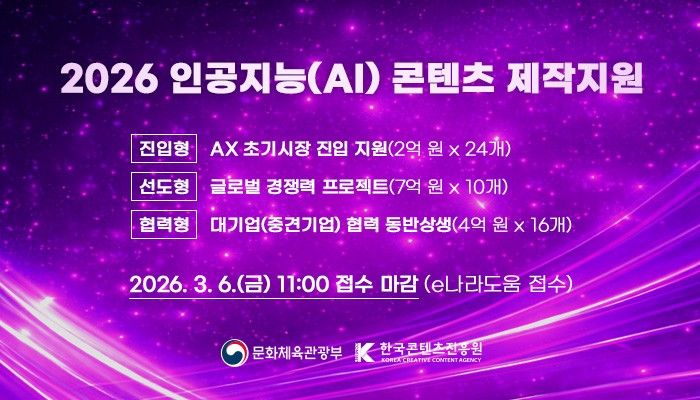 아울러 2026년 하반기에는 'AI 콘텐츠 페스티벌'을 개최해 제작 지원 성과를 산업계와 국민에게 확산할 계획이다.