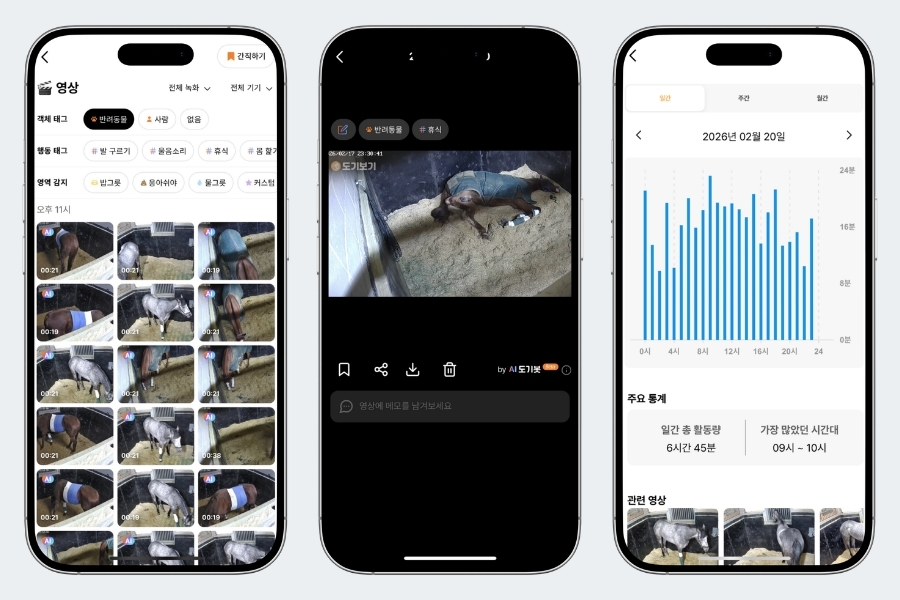 이 기술은 마방 내 CCTV 영상을 24시간 분석해 말의 통증·스트레스와 관련된 특이 행동을 실시간으로 감지하고, 이상 징후 발생 시 관리사에게 즉시 원격 알림을 제공하는 시스템이다. 펫페오톡이 AI 반려동물 홈캠 서비스 '도기보기'를 통해 축적한 동물 행동 분석 기술을 기반으로 개발됐다.