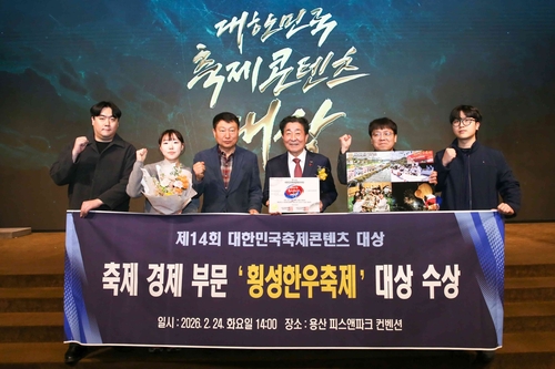 횡성한우축제, 대한민국축제콘텐츠대상 '축제경제부문' 수상 연합뉴스 원문 임보연 입력 2026.02.24 09:39 최종수정 2026.02.24 14:20 댓글 첫 댓글을 작성해보세요 글자 크기 변경 작게 기본 크게 가장 크게 출력하기 페이스북 공유 엑스 공유 카카오톡 공유 주소복사 주소복사가 완료되었습니다 기사로 돌아가기