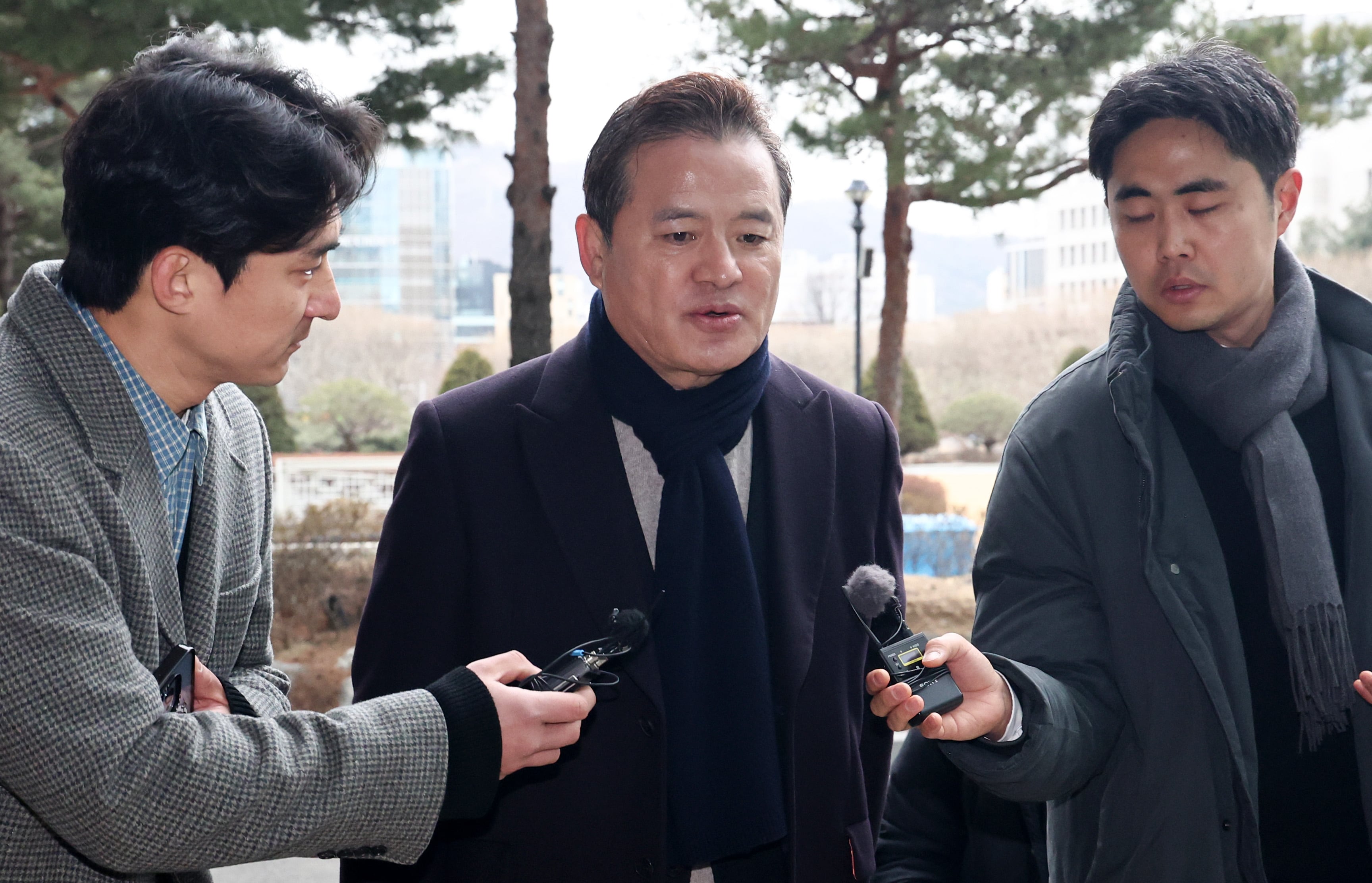 임종성 전 더불어민주당 의원이 24일 오전 서울 서초구 서울고등법원에 마련된 정교유착 검경 합동수사본부에 출석하며 취재진 질문에 답변하고 있다./뉴스1 |