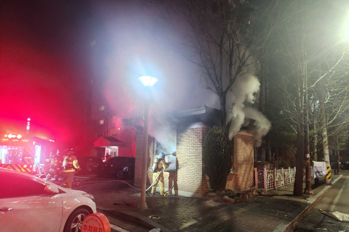 지난 23일 오후 8시 6분쯤 강원 춘천시 동면 만천리의 한 아파트 경비실에서 불이 났다.